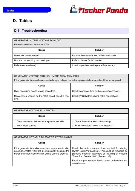 Troubleshooting Fischer Panda Generators Inc
